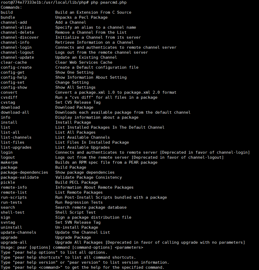 不过,在Docker任意版本镜像中,pcel/pear都会被默认安装,安装的路径在/usr/local/lib/php