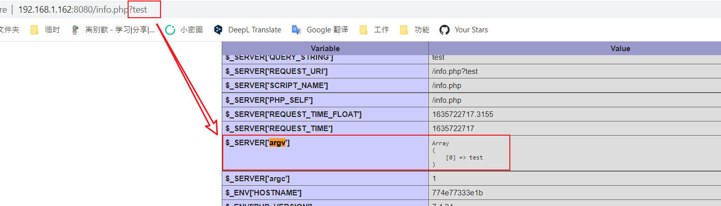 我最早的时候是在阅读phpinfo()的过程中,发现Docker环境下的PHP会开启register_argc_argv这个配置。文档中对这个选项的介绍不是特别清楚,大概的意思是,当开启了这个选项,用户的输入将会被赋予给$argc$argv$_SERVER['argv']几个变量。