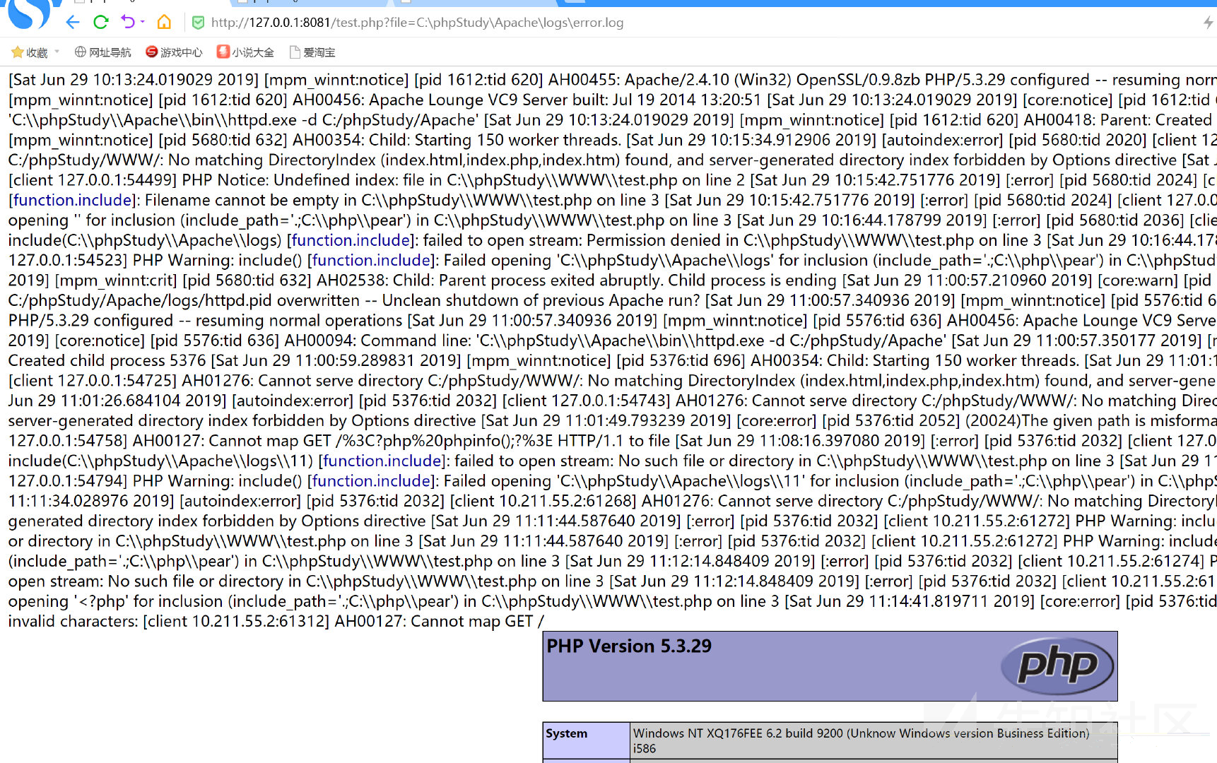 除了上传恶意文件以外,我们也可以通过包含一些日志服务产生的日志文件。常用的有: