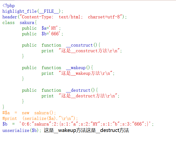 __sleep() 使用serialize时触发 ,在对象被序列化前自动调用,该函数需要返回以类成员变量名作为元素的数组(该数组里的元素会影响类成员变量是否被序列化。只有出现在该数组元素里的类成员变量才会被序列化)